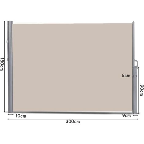 Our garden side awning, which features a large screen, creates a cosy corner without constant wind and low sun while providing privacy. The screen is made of waterproof and tear-resistant polyester fabric. And the aluminum alloy frame makes the side awning sturdy and resistant to rust. With the convenient handle and practical retracting mechanism, it is easy to open and retract in daily life. When not in use, you are able to retract it to store and save your space. The simple and stylish design makes it an ideal complement to your office, studio, garden, backyard, terrace, balcony, etc. Don’t hesitate to purchase one!