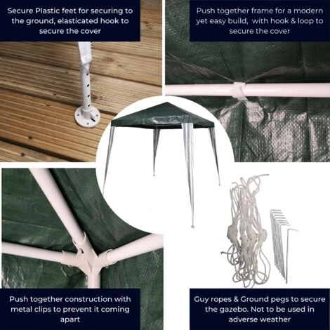 - Green & White PE fabric (110gsm) with white powder coated steel frame