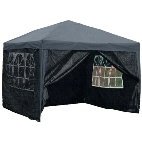 The gazebo is made from a waterproof polyethylene fabric, which means that the gazebo is showerproof but it is not recommended as protection against heavy rainfall.