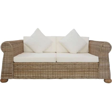 Thanks to the genuine rattan fitrit material, the sofa is easy to clean, hardwearing and suitable for daily use. It features a sturdy wooden frame, which is highly durable and stable. The thick seat and back cushions and pillows are considerably conformable and also washable thanks to their removable covers. In addition, the wide armrests add to your seating comfort.