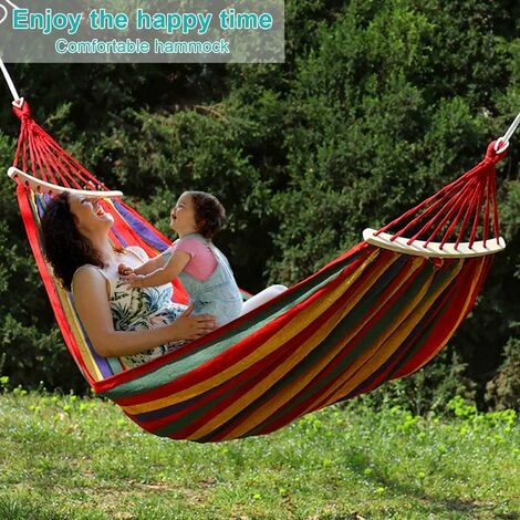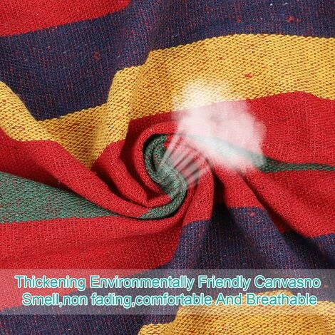 Large Space Canvas:No fading, no odor, no pilling. The hammock is wear-resistant and comfortable, skin-friendly, and breathable. which will not fade and wear-resistant. The soft cotton fabric adds more comfort for laying on this hammock, so you can enjoy leisure time and forget worries.