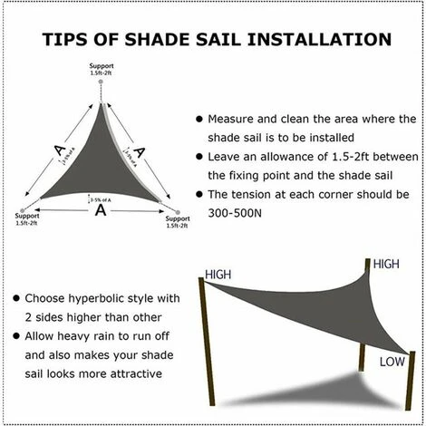 Usage: For your garden, yard, carport, swimming pool, balcony, patio or camping, ideal shade sails.