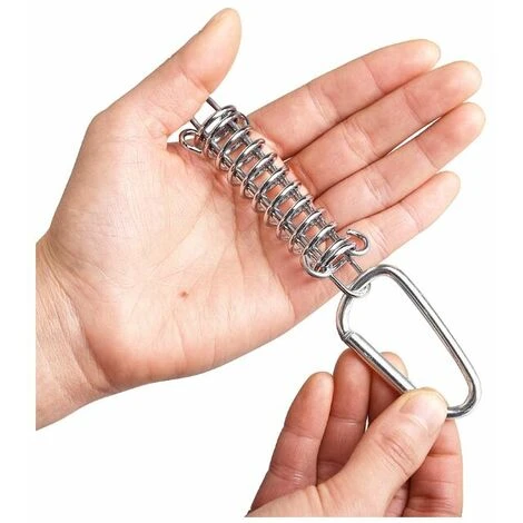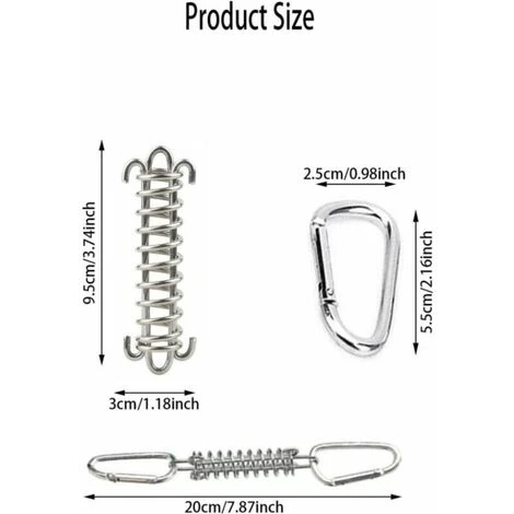 【Package Contents】You will receive 4 tension springs 8 carabiners, the size is 9.5cm x 3cm and the carabiner size is 5.5cm x 2.5cm.< br/>【High quality material】 The tension spring is made of very strong stainless steel. Strong elasticity, thick and wear-resistant, strong anti-rust ability, high toughness, strong tensile strength, no deformation, no cracking.