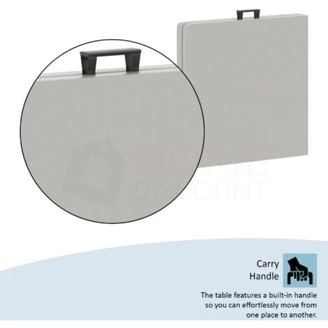 Home Discount offers this stunning new product, Folding Table, 4ft. Sturdy, stylish and practical, there is simply nothing to dislike about this folding table. Providing you with ample storage for everything from food to market goods, this table will be a great help on occasion. Table folds smoothly and has a carry handle for easy portability. It also features a trestle steel framework and legs that can be locked in place for additional stability.