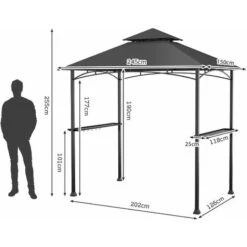 - The gazebo features heavy-duty aluminum-coated anti-rust frame and is supported by 4 D80mm upright legs, each tray forming a triangle of iron. The triangular connectors also ensure the stability of the patio pavilion.
