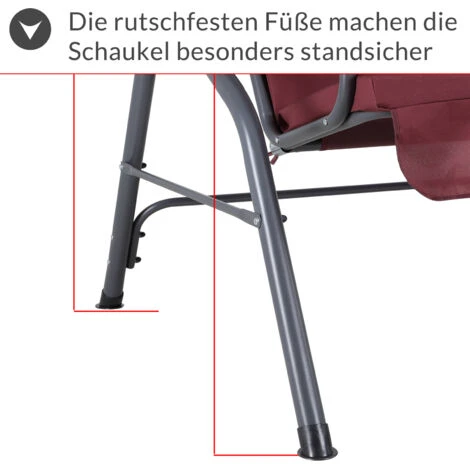 The frame is made of robust steel and the shape of the legs with non-slip feet ensure additional safety. The balcony swing can be loaded up to 200 kg and at 140 cm in length it offers enough space for 2 people.
