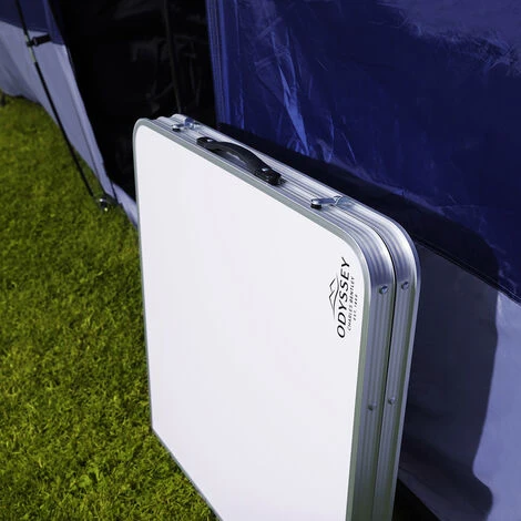 This portable 4 seater Odyssey picnic table is perfect for family picnics, BBQ’s and camping trips. Featuring a hard-wearing aluminium frame, the folding picnic table has an adjustable height and comes complete with four foldable stools. Offering a space saving design, the furniture set can be easy disassembled and the stools fit inside the folding table, which is equipped with locks, for compact storage. With a built-in handle, the set can be easily transported and is both easy to clean and maintain.