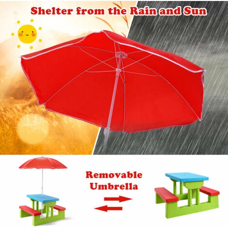 - [Removable Umbrella] Collocated this picnic table with 107 cm umbrella, it will protect your baby from harmful sun and the height can be adjusted as needed. In addition, the umbrella is also removable and your children will have a spacious table to use.