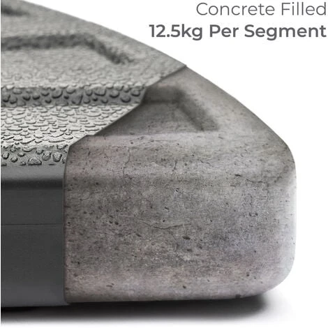 Each base segment is pre-filled with concrete, so there’s no need to fill them with water or sand to give them the additional weight they need. They’re ready to use straight from the box!