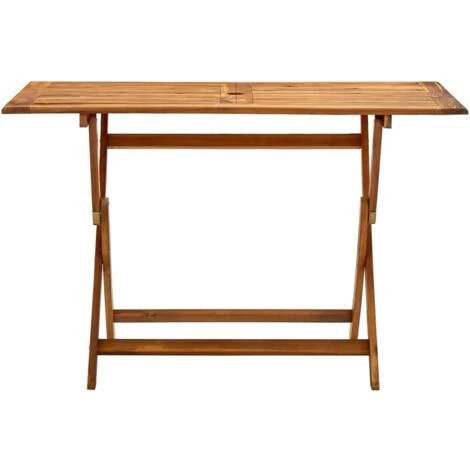 The outdoor table is made of solid acacia wood, a tropical hardwood, which of course is weather-resistant and highly durable. The oil finished surface also makes it easy to clean with a damp cloth. The table can be folded away to save space when not in use.