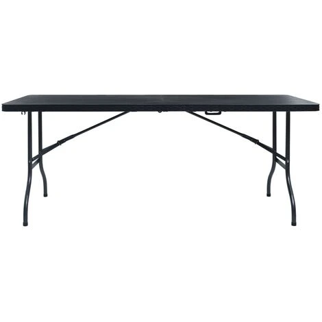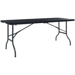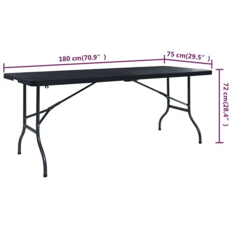 This foldable table, featuring a stylish rattan design, is perfect for picnics, parties, and camping trips. With a length of 180 cm, the compact garden table offers ample space for your picnic accessories, utensils or food, etc.
