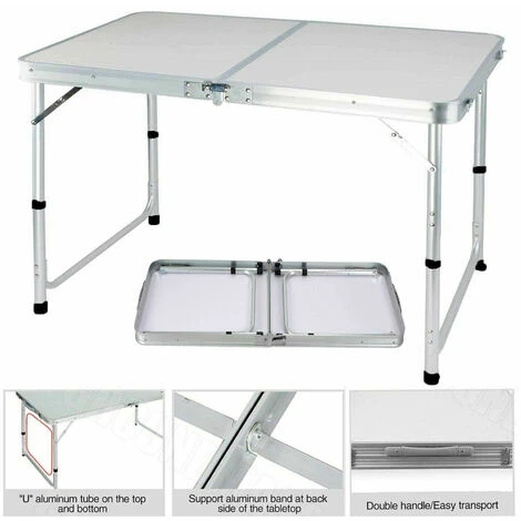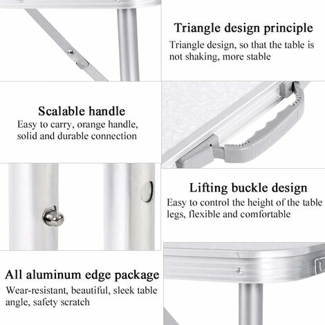 ��Durable & Stable��This 4ft camping table is made of thicker aluminum alloy frame and tripod structure, finished with added U-shape side support and secure