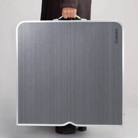 A particular feature is the space-saving folding function. Thanks to the carrying handle, the low weight and the folding function, the table can be easily transported and fits into almost any car trunk.