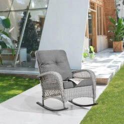 Outsunny Patio Rocking Lounge Chair Zero Gravity Chaise W/ Padded Pillow Grey