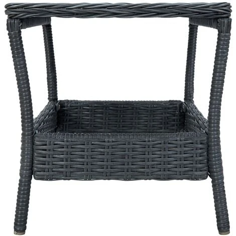This poly rattan garden table adds a touch of modern elegance to your outdoor living space with its simple yet stylish design.
