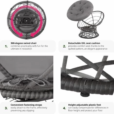 - Material: powder-coated steel, polyurethane, 100% polyester
