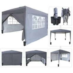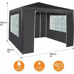 3x3m Gazebo With Side Panels Waterproof Party Event Tent Marquee Steel Frame WS GREY