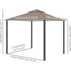 Outsunny Garden Gazebo Wedding Canopy Shelter Mesh Square Party Brown 3 X 3m