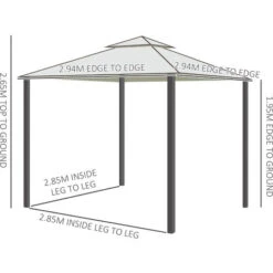 Outsunny 3×3(m) Outdoor Patio Gazebo Pavilion Canopy Tent Steel Frame Grey