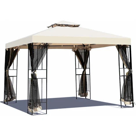 - DOUBLE ROOF:The design of our ourdoor gazebo is double top with netting which helps air circulation and to hold up in wind better.The double-tiered polyester roof features keeping everyone cool in the shade.