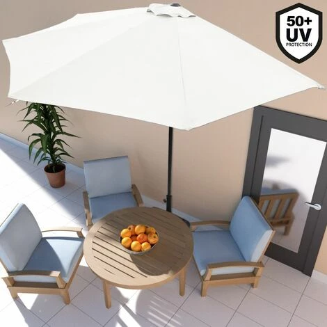 With the semi-circular 270 cm (106 IN) wide parasol, you’re going to be well prepared for summer. Thanks to its semi-round design, the umbrella is ideal for your balcony and patio. It also provides UV 50+ optimal protection from the sun.