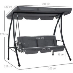 Outsunny Garden Swing Chair Patio Hammock 3 Seater Bench Canopy Lounger Grey