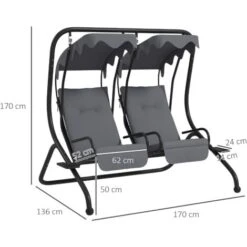 Outsunny Canopy Swing 2 Separate Relax Chairs W/ Handrails, Cup Holders Grey