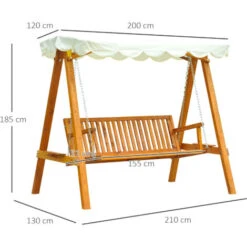 Outsunny Swing Chair 3 Seater Swinging Wooden Hammock Garden Seat Outdoor Canopy Cream