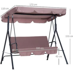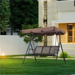 Outsunny Outdoor Metal Hammock Swing Chair 3-Seater Patio Bench Garden Brown