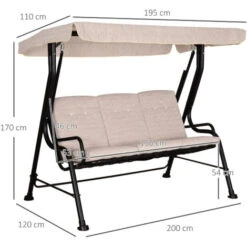 Outsunny Outdoor 3-person Garden Metal Padded Porch Swing Chair Bench Beige