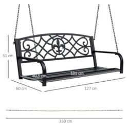 Outsunny Outdoor Steel Fleur-De-Lis Porch Swing Garden Hanging Bench Black