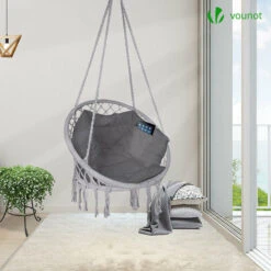 VOUNOT Swing Chair With Round Seat Cushion, Macrame Hammock Hanging Chair For Indoor, Outdoor, Grey