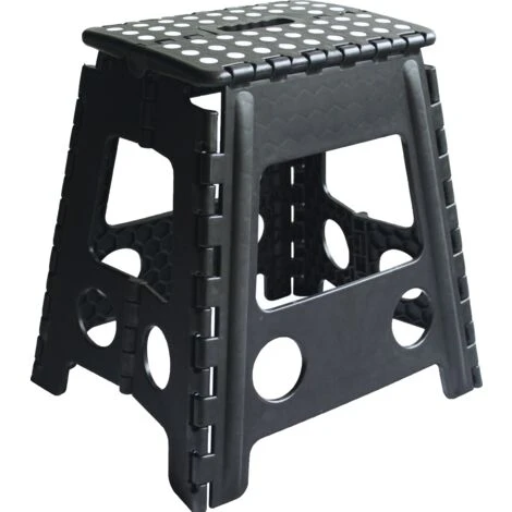 Made from heavy duty black plastic, the folding step stool can be unfolded and set up in a matter of seconds thanks to the durable hinges that keep the stool rigid.