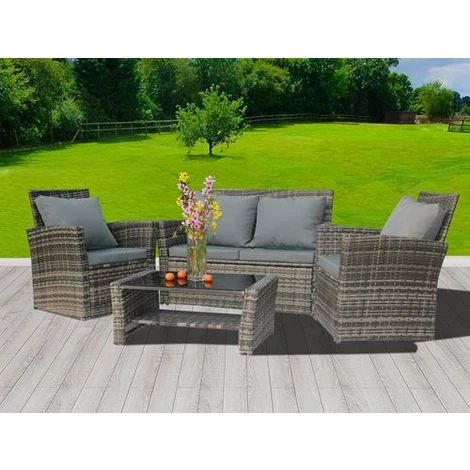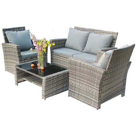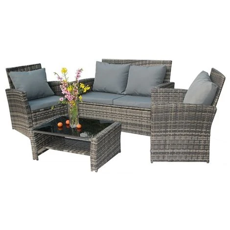 * 4 pieces Rattan Sofa Set complete with Chairs and Coffee Table,