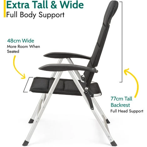 The chair has a tubular aluminium frame which has the dual-benefit of being strong and lightweight. It’s capable of supporting a maximum weight of 150kg (23 stone approx.).