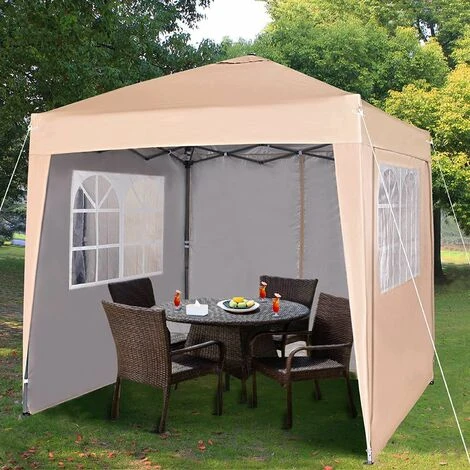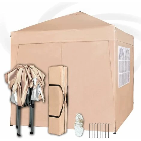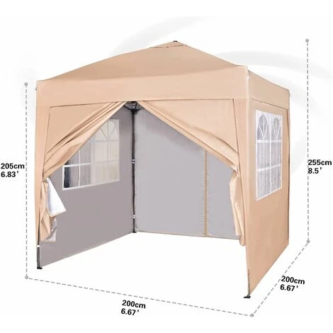 | Description: This recreational canopy sets up in just minutes.This canopy comes with a heavy duty steel folding frame,  double layer roof and sides also guide ropes, pegs & a storage carrying bag. Supplied with four side panels – two with church style windows and two with full length zipper doorways. This complete gazebo package has everything to let you set up easily for parties, barbecues and any other events. All the seams (including zips and windows) are taped over to offer extra durability to the stitching.  Features: ? Includes 4 side walls ? Fully assembled Insta-Lock steel frame ? 2m x 2m. recreational shade. Sets up in just minutes ? 2 sides come with church windows design & 2 with zipper doorways. ? Durable Waterproof 300 Denier Top & 190g PU side walls with silver lining which brightens up the inside of gazebo and adds to better waterproofing ? Extra Sliver Waterproof Layer ? Removable Walls attached with Velcro Fasteners. Easy Removal and Assembly. ? LxWxH: 2mx2mx2.8m ? Can be erected on both hard or soft ground. Includes Ropes and Stakes for added Stability.  Contents: Gazebo Carrier Bag Installation Manual Please check listing below for replacement parts https://www.ebay.co.uk/itm/153986781067