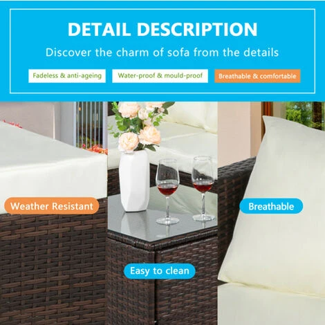 Do you need a universal furniture to fulfill all your daily needs? If so, you can have a try of our 9 Seat Rattan Furniture. It is made of very durable and completely weatherproof rattan. If the cushions get dirty by accident, you can simply zip off the cover and wash the covers. Featuring sturdy construction and durable use, this patio outdoor wicker can well stand for both test of time and high temperature, which is perfect for any outdoor and indoor use and fulfills your purpose to decorate the place you desire. Our wicker products are durable, can withstand rain and wind all year round, and can resist ultraviolet rays. What do you hesitate for? Hurry and place an order!