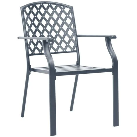 The chairs are made of sturdy steel with an e-coating and powder-coating. The e-coating (electrophoretic coating) is applied to make chairs resistant to rust, weather, and long-term outdoor use, while the powder coating helps to enhance the durability. The mesh back and slatted seat adds to the extra elegance. The dining chairs can be stacked to save space when not in use.