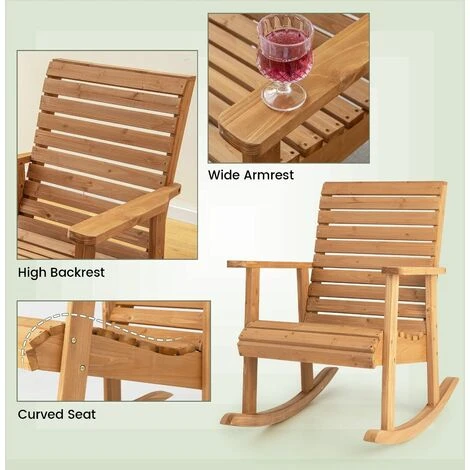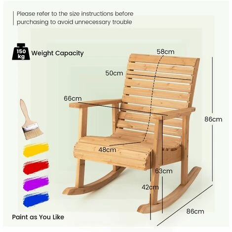 Ergonomically designed with high backrest, wide armrests and curved seat, this porch rocker is comfortable enough for you to sit on. Once you rock, the scientific rocking radian ensures a safe and gentle rocking experience to make you feel cozier for complete relaxation. What’s more, the selected fir wood is burr-free, durable and stable. All of these advantages endow the longer service time for this patio rocking chair. If you want to make this outdoor rocker chair more unique, just paint the surface in different colors, matching your indoor or outdoor decoration better.