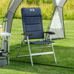 Relaxdays Camping Moon Chair, 120 Kg, Comfortable, XXL Foldable Garden Chair With Tote, Dark Blue