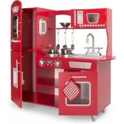 Wooden Kitchen – Big Red – With A Microwave And A Fridge + Sound Effects
