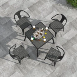 Livingandhome 5 Pcs Patio Bistro Set Metal Frame Table And Chairs Garden Furniture, Grey