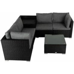 Outdoor Modular Lounge Sofa Set With Storage Box 4 Seater – Black