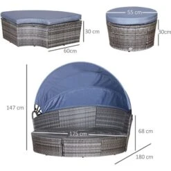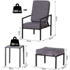 Outsunny 5pcs Garden Recliner Sofa Footstool Coffee Table Set W/ Cushion