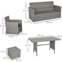 Outsunny 6 Pieces Rattan Furniture Set Conservatory Sofa Deluxe Wicker Garden Grey