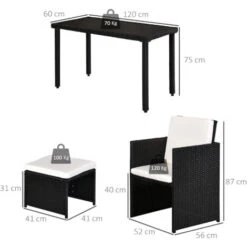 Outsunny 6 Pieces Sofa Set Furniture Rattan Cushion Seat Wicker Black, Cream White