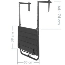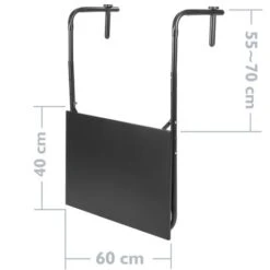 PrimeMatik – Rectangular Adjustable Balcony Table 60x36cm Black Imitation Wood Braiding