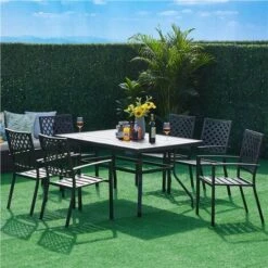 YAKOE VANCOUVER 7 SEATER RATTAN GARDEN SOFA SET IN BLACK WITH FITTING COVER