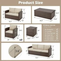 YAKOE VANCOUVER 5 SEATER RATTAN GARDEN SOFA SET IN BLACK WITH FITTING COVER
