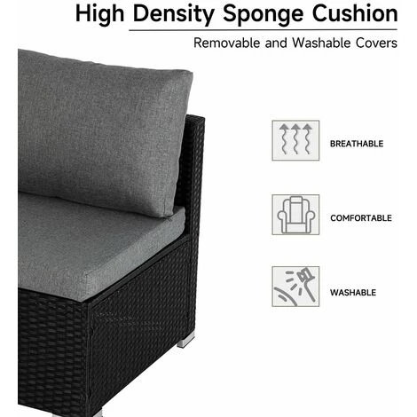 Generous in size and stylish in design, let this longe sofa take the lead for your outdoor leisure times this season. It consists of six pieces – 2 armless sofa, 2 corner sofa, a tall storage corner table and an oblong coffee table, giving you plenty of room to relax all day by yourself or with others. Discreet storage is located both in the tall corner table via the lift up lid.